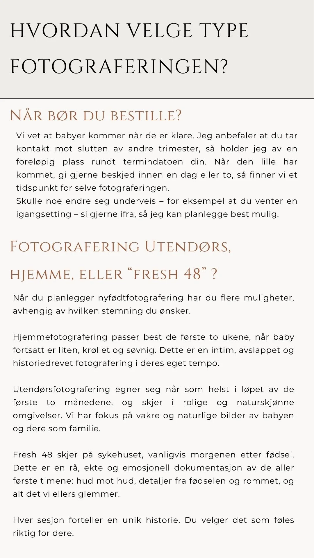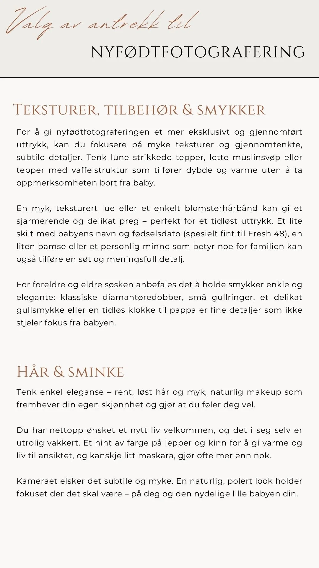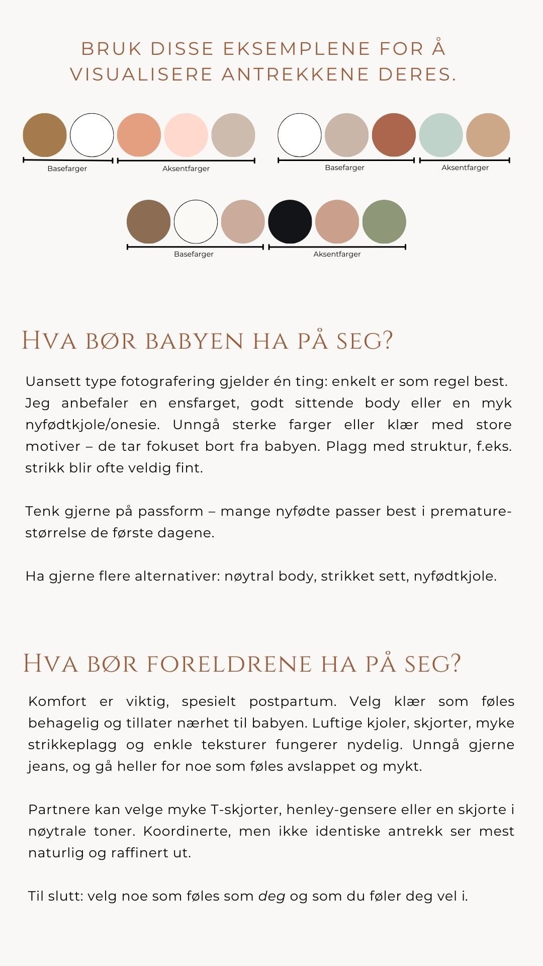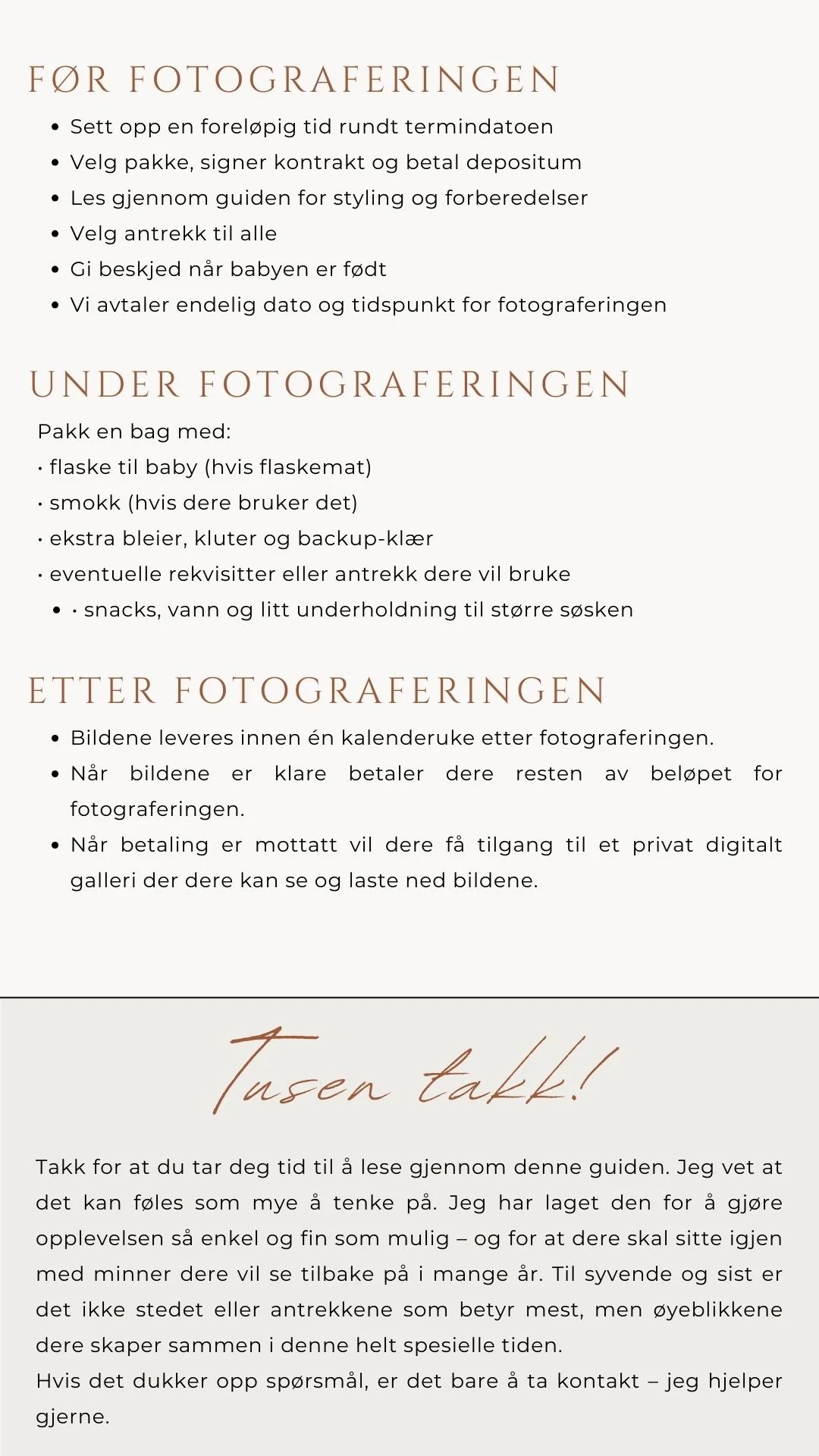 Denne guiden har jeg laget for at dere skal føle dere forberedt og trygge, og for at fotograferingen skal bli en rolig og god opplevelse for hele familien.