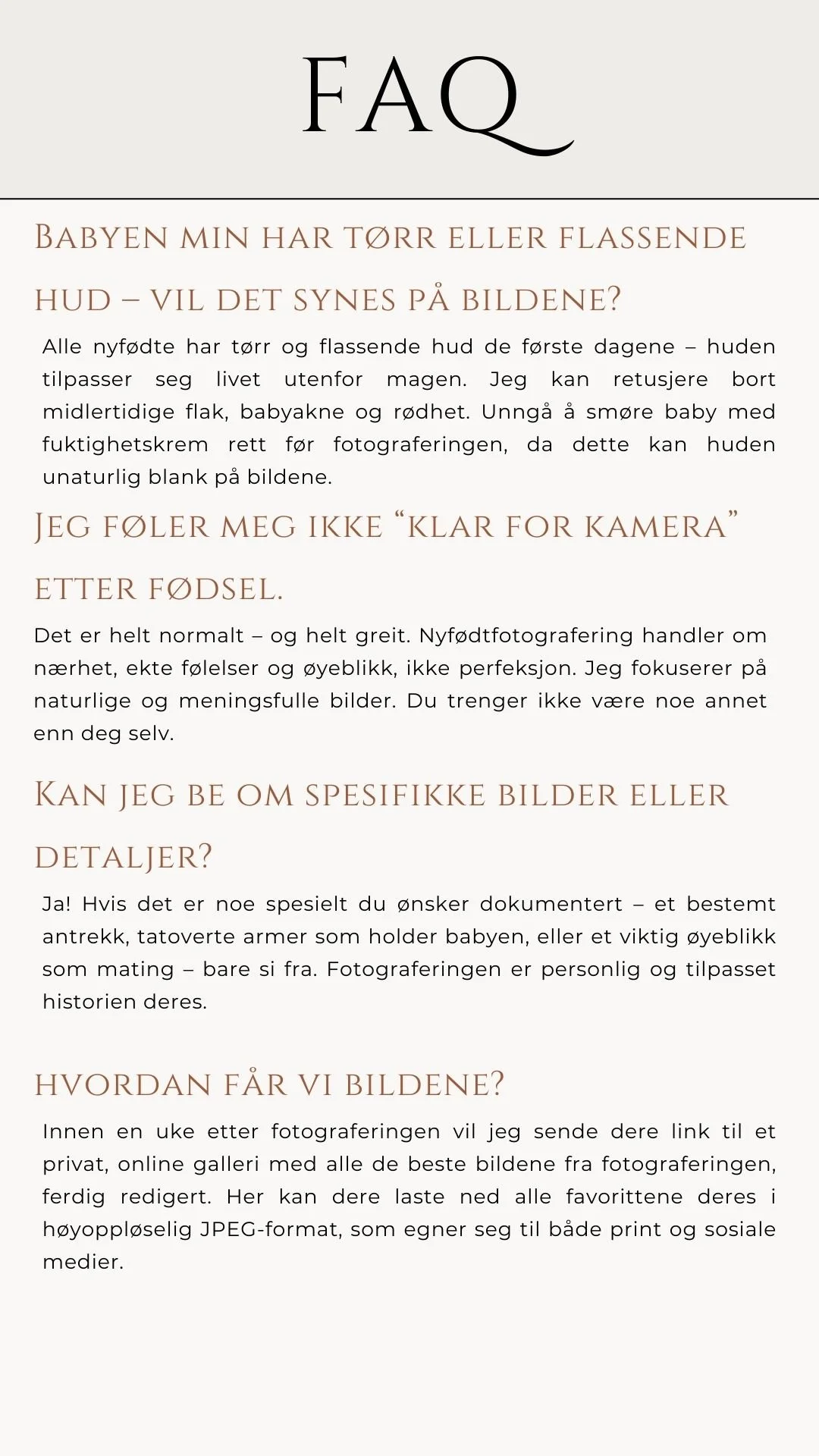 Jeg er selv tobarnsmamma, og vet hvor sårbar og overveldende nyfødtperioden kan føles. Under fotograferingen skal dere senke skuldrene helt og bare være dere selv – jeg tar meg av resten ♡
